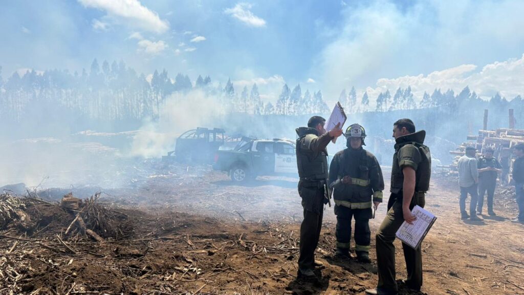 Durante la madrugada de este domingo se registró un nuevo hecho de violencia en el sector Faja 12.000 Alto, en el fundo Galicia, donde siete maquinarias forestales fueron incendiadas, resultando con graves daños materiales.